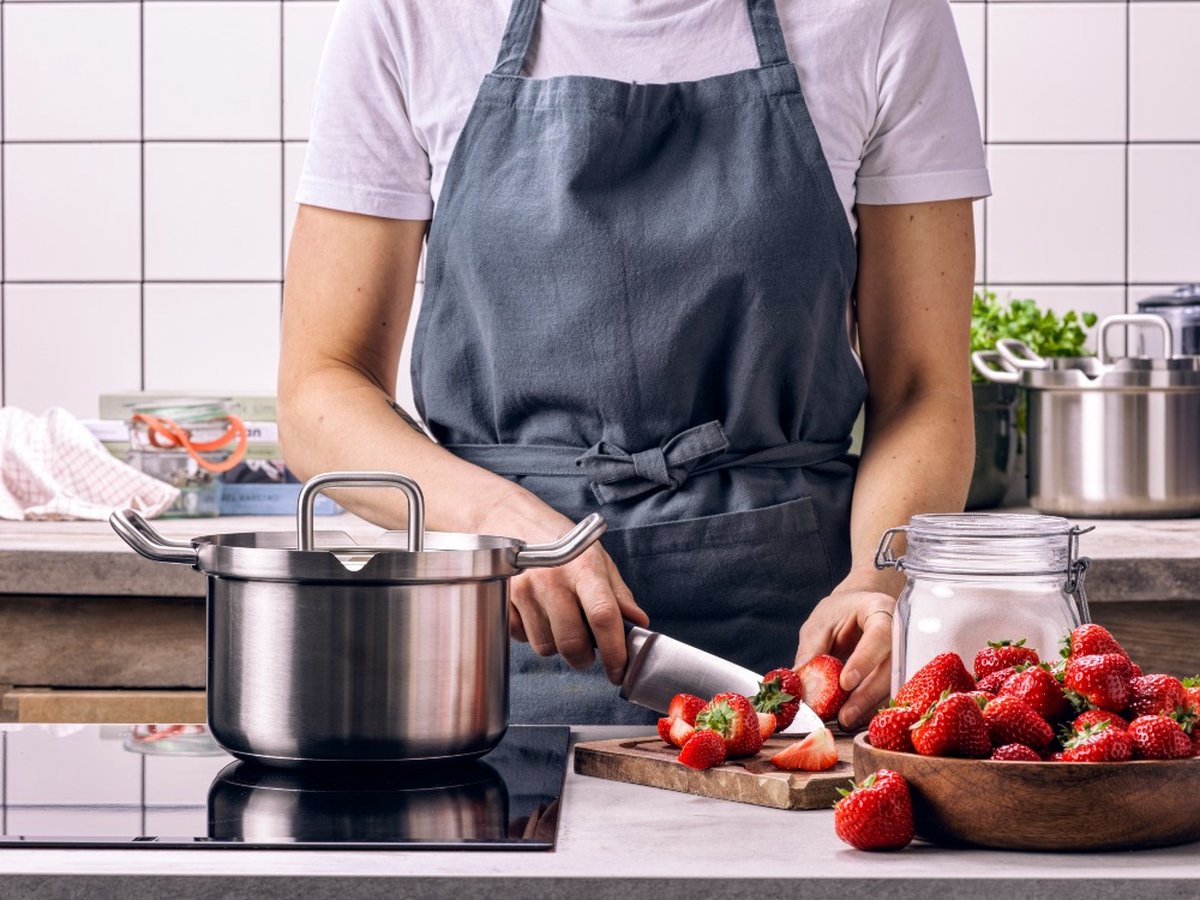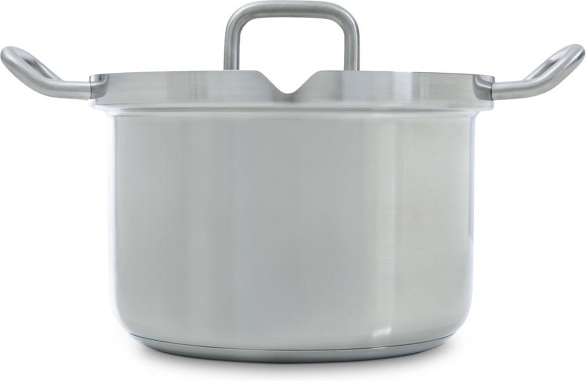 Het opvallendste kenmerk van deze set is het ingebouwde afgietsysteem: door de deksel een kwartslag te draaien zet je deze vast zodat hij niet van de pan valt tijdens het afgieten. Voordeel: je hebt geen vergiet meer nodig bij het afgieten van pasta, groenten of bouillon. In de praktijk betekent dit minder rommel en één hand minder om een heet vergiet te vasthouden. Dit is vooral handig wanneer je alleen kookt of wanneer je weinig aanrechtruimte hebt.