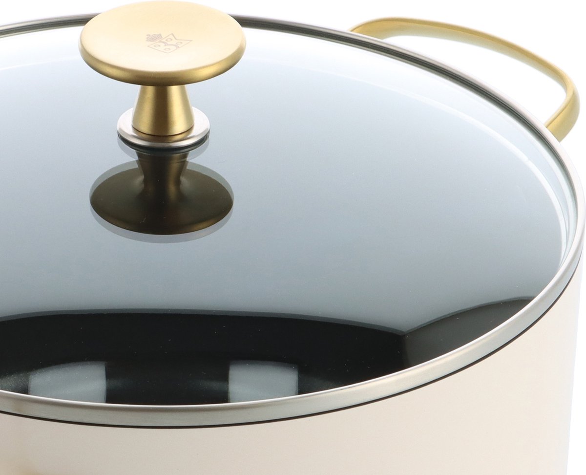 Ik gebruik de BK-pannenset nu een paar maanden, dus tijd voor een eerlijke beoordeling. Eerst het positieve: de cream white kleur met gouden handgrepen ziet er heel stijlvol en luxe uit in de keuken. Dat de pannen PFAS‑vrij zijn en van gerecycleerd aluminium gemaakt zijn, vind ik ook een groot pluspunt. Alles kan in de vaatwasser, wat het gebruiksgemak vergroot, en de anti-aanbaklaag werkt naar behoren.