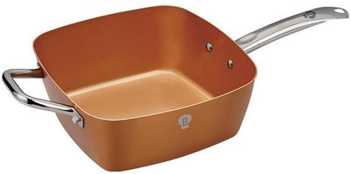 Overzicht:Deze keukenset met antiaanbaklaag is ideaal voor gezond, kleefvrij koken in Nederlandse keukens. De diepe vierkante pan meet 24x24x9 cm.