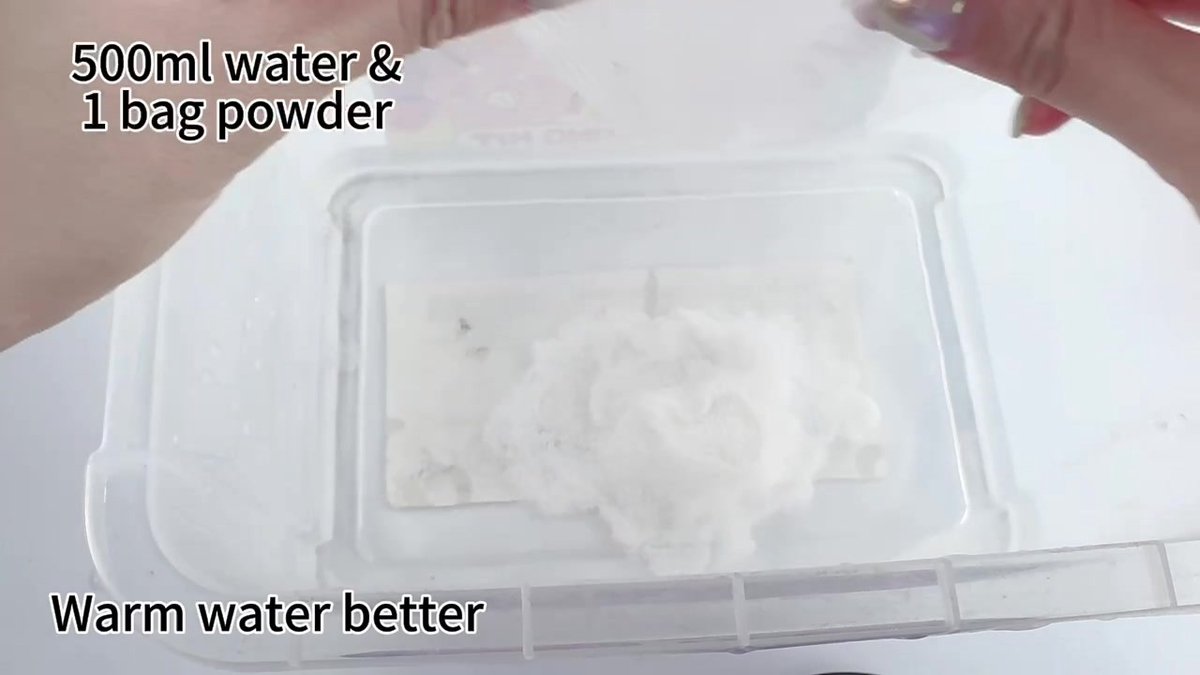Volgens de handleiding heb je genoeg aan 1 zakje oplossing, maar in de praktijk heb je er 2 nodig voordat er überhaupt vorm ontstaat in het water. Daardoor kun je het maar 2 keer gebruiken in plaats van 4. De vormpjes moeten daarna in schoon water stabiliseren, maar daar heb je niets aan: bij de minste aanraking lopen ze uit en blijft er een smurrieboel over. Erg teleurstellend.