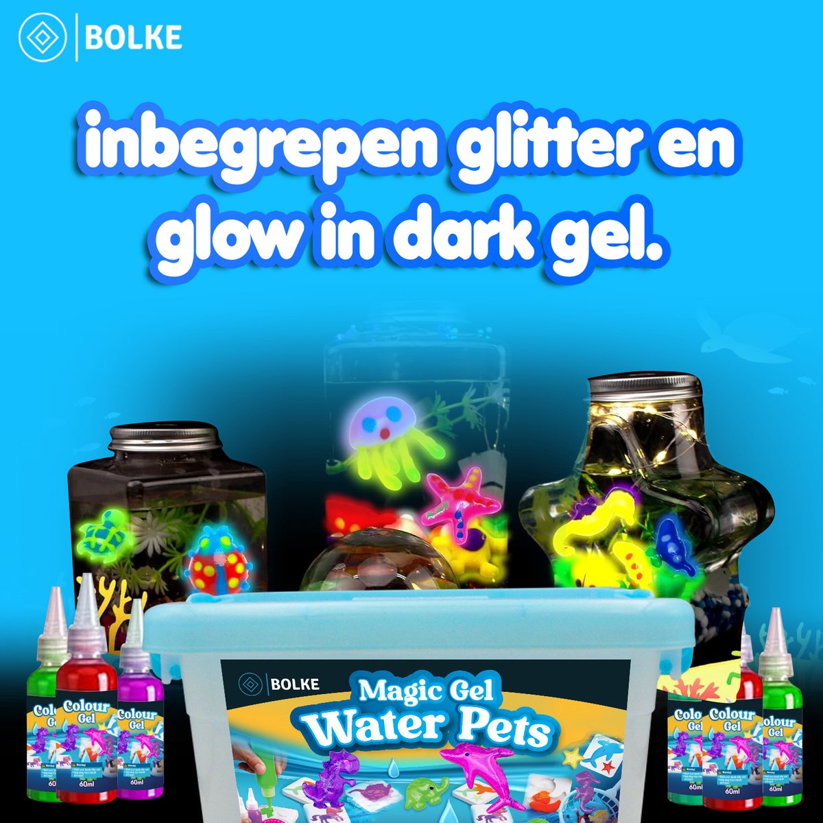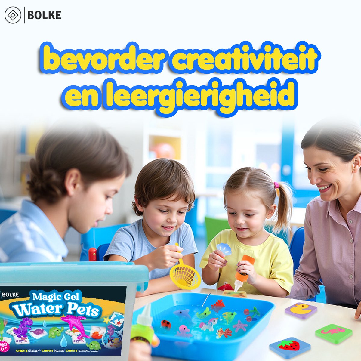 De Water Elf Magic Gel Kit is een creatieve knutselset waarmee kinderen 3D-figuren laten ontstaan in water — ideaal voor schermvrij plezier op regenachtige middagen in Nederland. Het pakket bevat 20 gel-flesjes en 25 herbruikbare siliconen mallen, inclusief glitter- en lichtgevende kleuren.