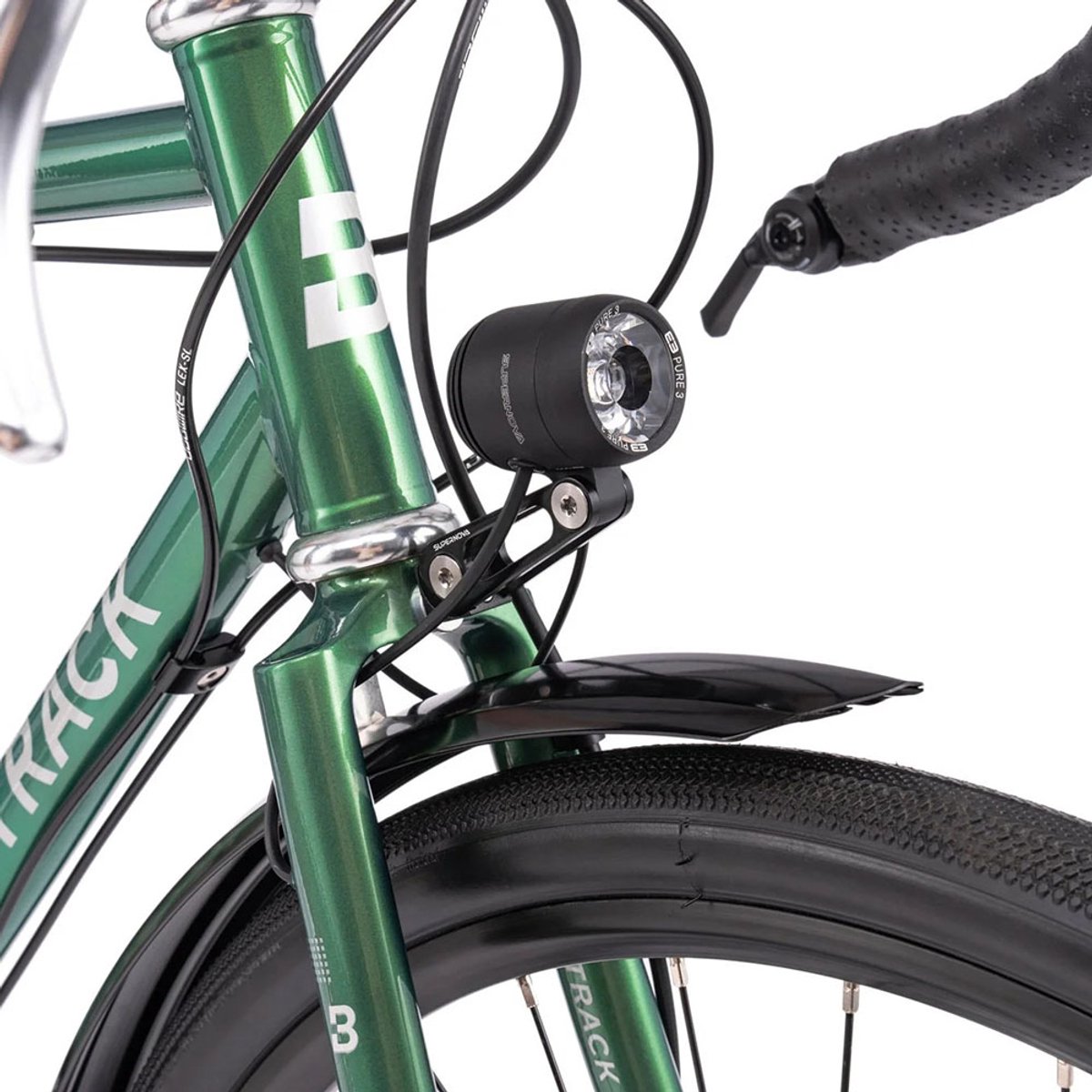- Supernova dynamoverlichting (E3 Pure 3 koplamp en Tail Light 2 achterlicht) met interne kabelgeleiding
