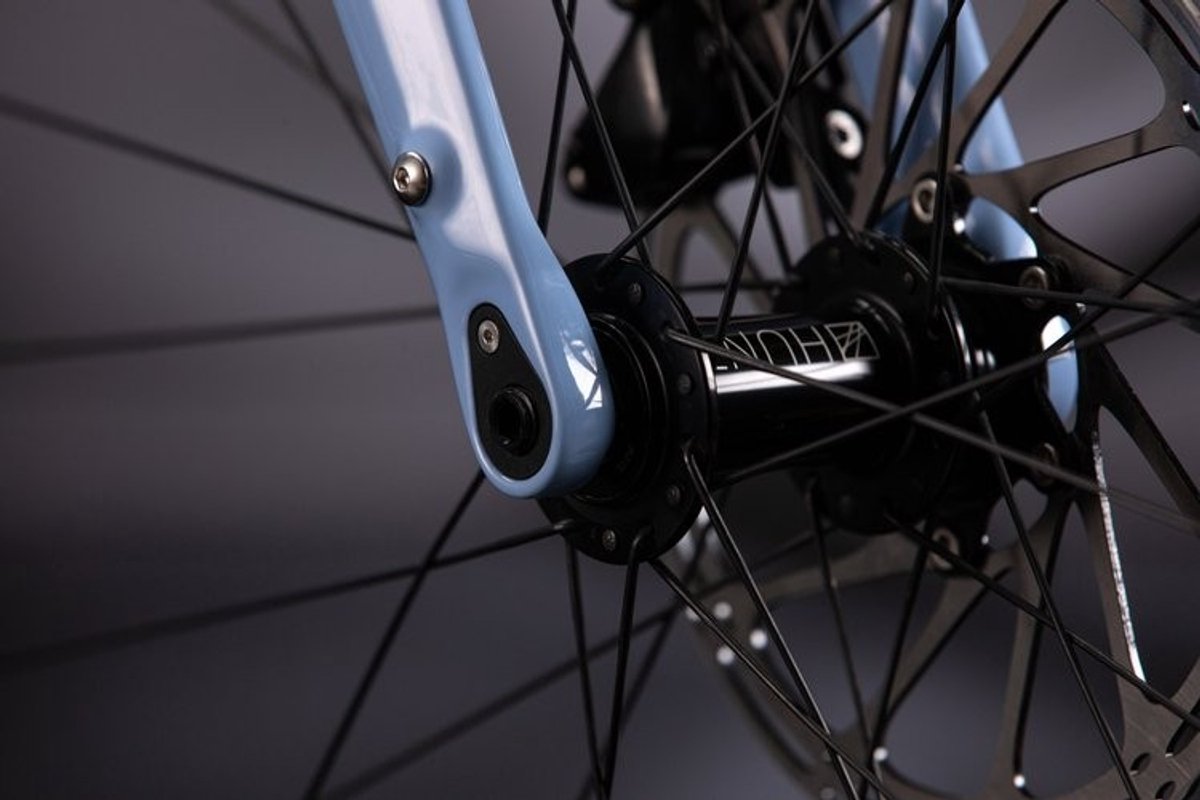 Een aandachtspunt bij gravelbikes is de kabelvoering. Hier biedt Bombtrack een nette middenweg met optionele interne kabelgeleiding. Wie maximale strakheid en bescherming wil, kiest intern; wie eenvoud en sleutelgemak verkiest, kan extern blijven. Die keuzevrijheid is een plus, zeker voor avonturiers die graag zelf sleutelen. De UDH derailleurhanger onderstreept dat toekomstgerichte karakter: wereldwijd beschikbaar en ontworpen om lijnrecht te blijven met moderne aandrijvingen.