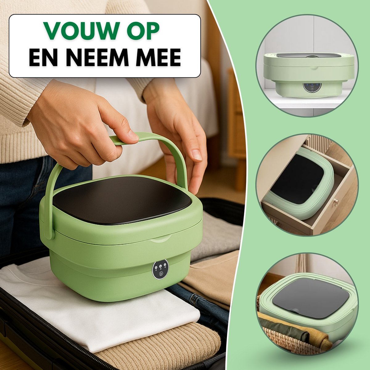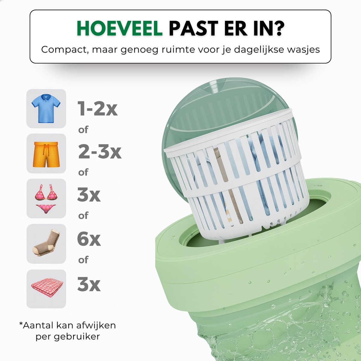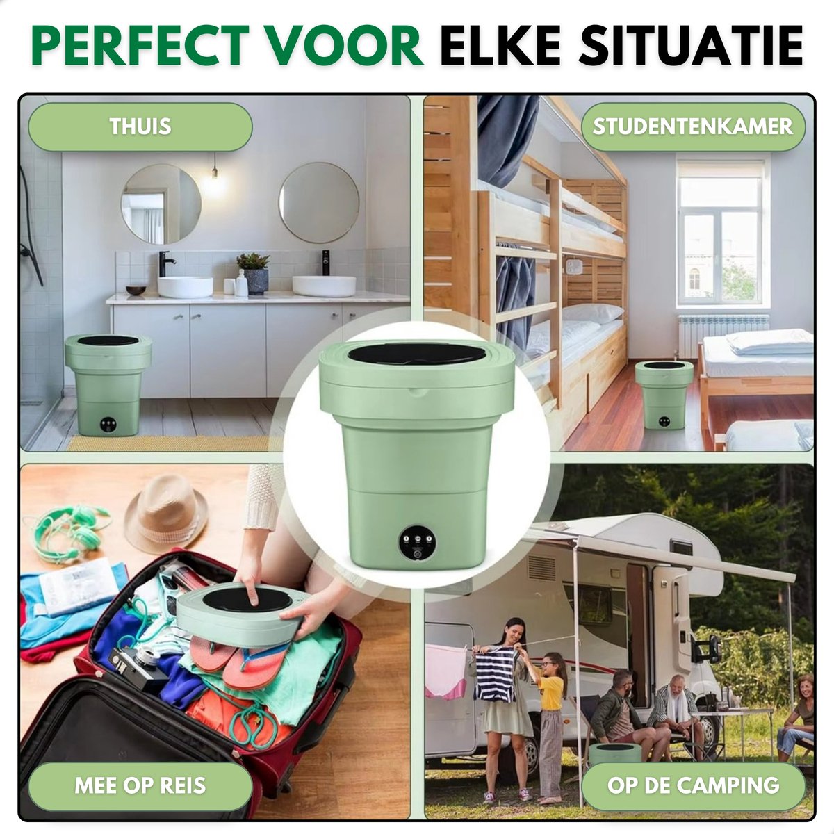 De Boncy® mini wasmachine 11 liter is een opvouwbare oplossing voor kleine wasjes. Ideaal voor Nederlandse huishoudens met weinig ruimte, van studentenkamers tot kampeertrips.