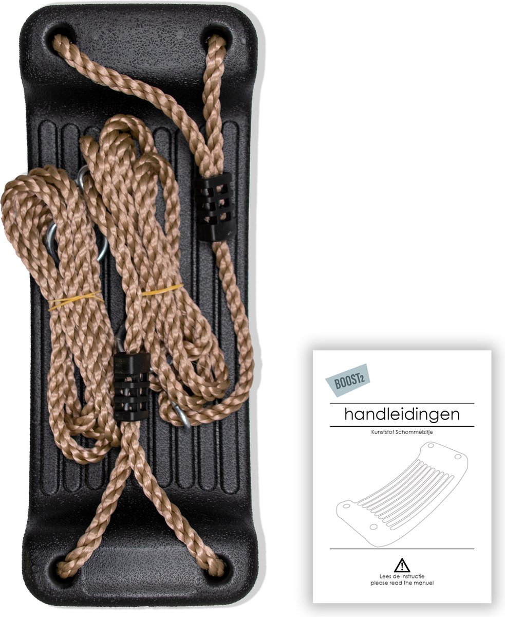 Specificaties: BOOST2 schommelzitje zwart kunststof met PP-touwen review: veilig
