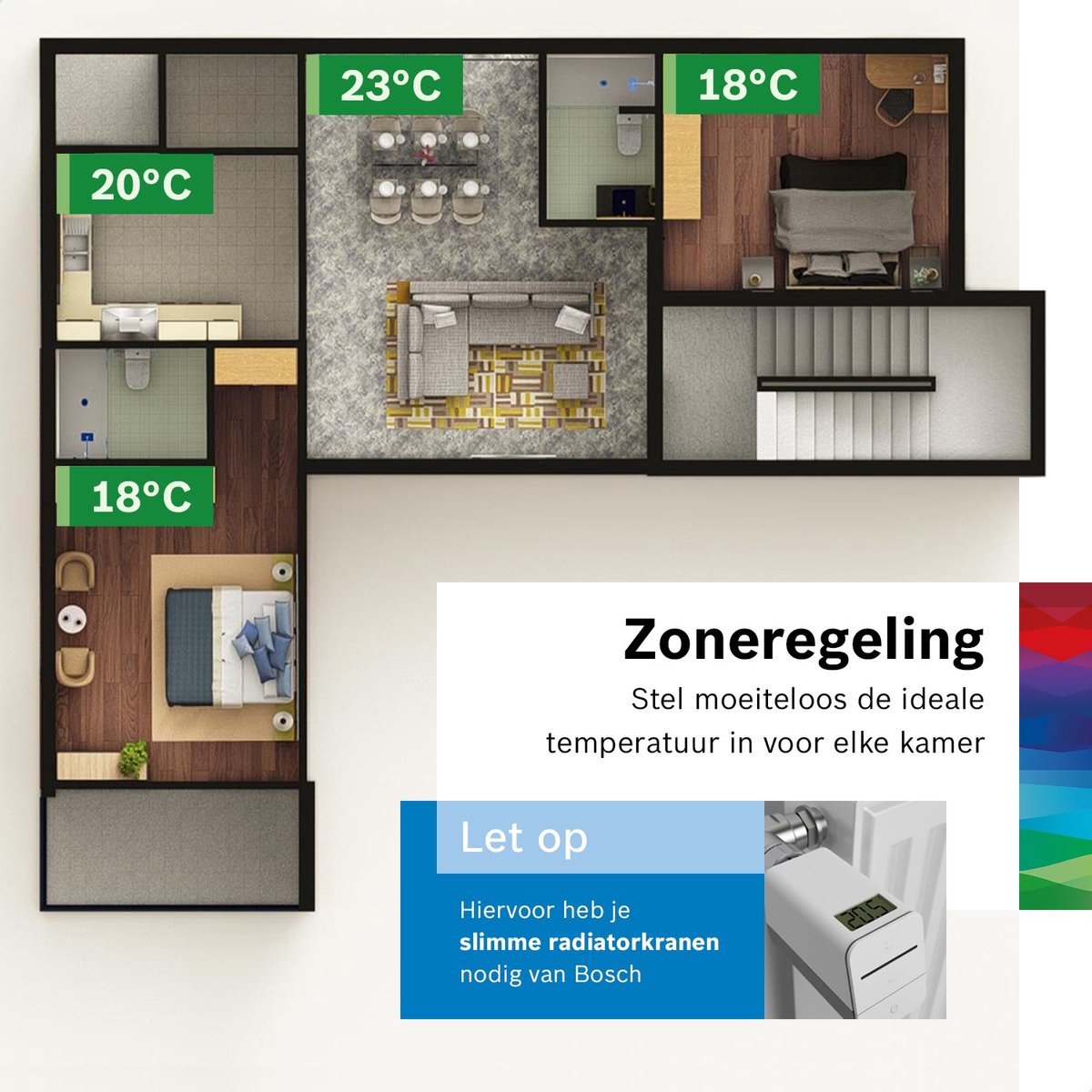 Zoneringsoptie per ruimte (met extra Bosch radiatorthermostaten)