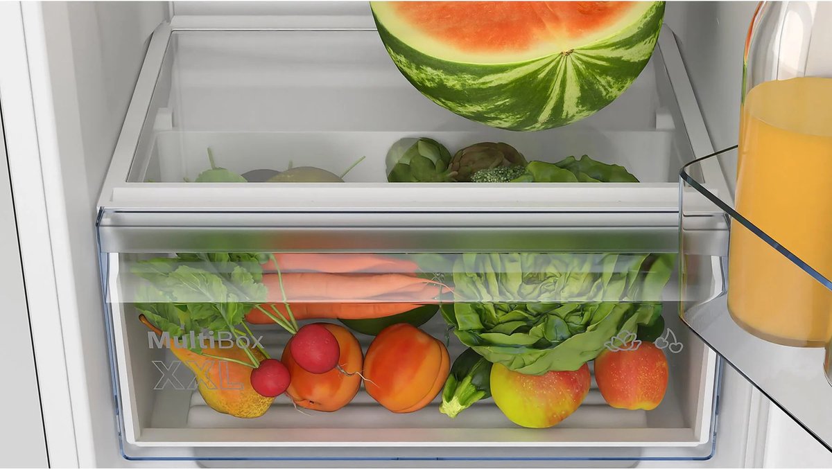 - Inbouwkoelkast met geïntegreerde Multi Box XXL-lade voor groente en fruit