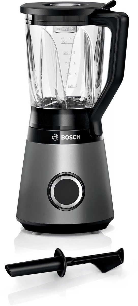 De Bosch MMB6172S VitaPower blender is een krachtige keukenhulp die zonder moeite smoothies, shakes, pesto’s en zelfs ijsdrankjes glad krijgt. Met een 1.200 watt motor, ProEdge roestvrijstalen messen en een hittebestendige ThermoSafe glazen kan (bruikbaar volume 1,5 liter) is dit een serieuze allrounder voor wie dagelijks blendt.