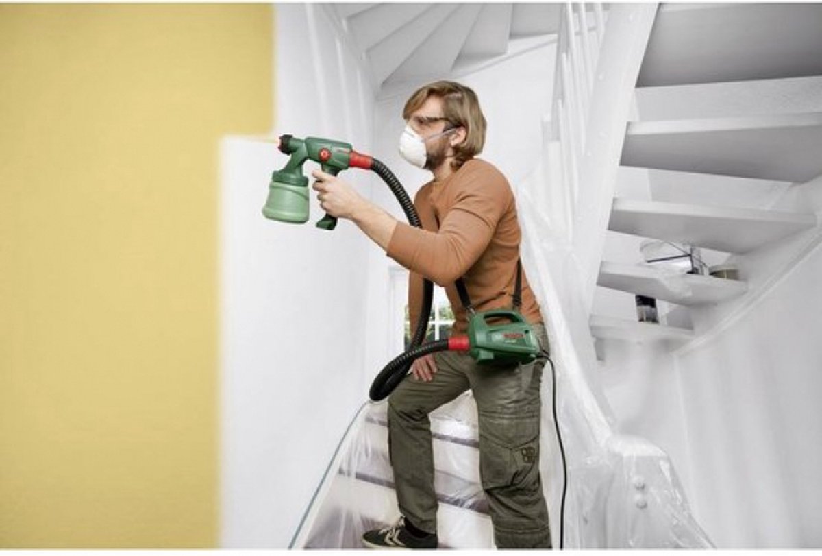 De Bosch PFS 2000 verfspuit maakt schilderen in en om het huis sneller en netter voor de Nederlandse klusser. Dankzij de 440 W motor vernevelt hij gelijkmatig, ook op lastige structuren.