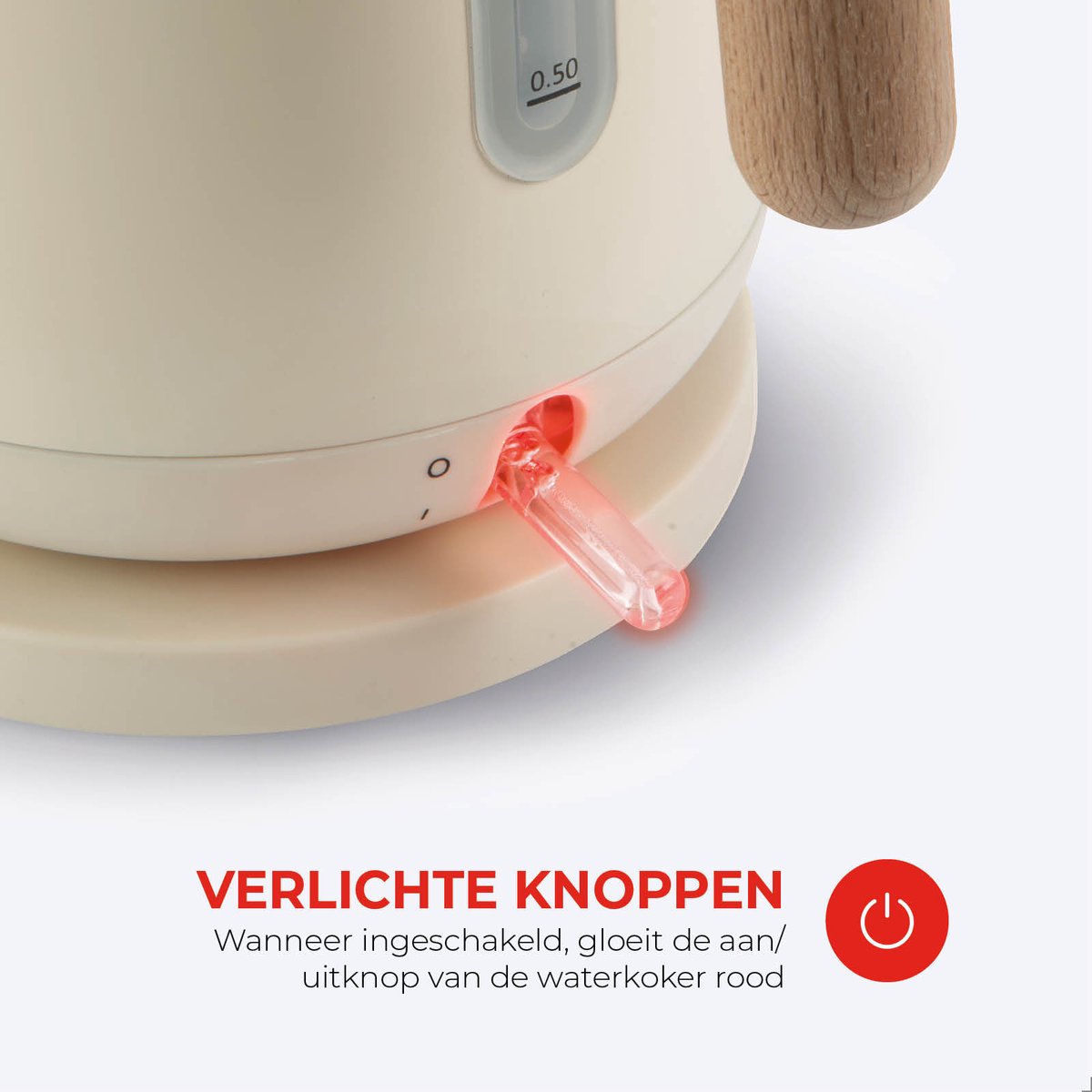 De schakelaar licht op tijdens het verwarmen, zodat je in één oogopslag ziet of de koker aanstaat. Dit is vooral prettig in een drukke keuken of bij weinig licht. Het geeft visuele zekerheid en voorkomt dat je onnodig wacht of per ongeluk twee keer op de knop drukt.