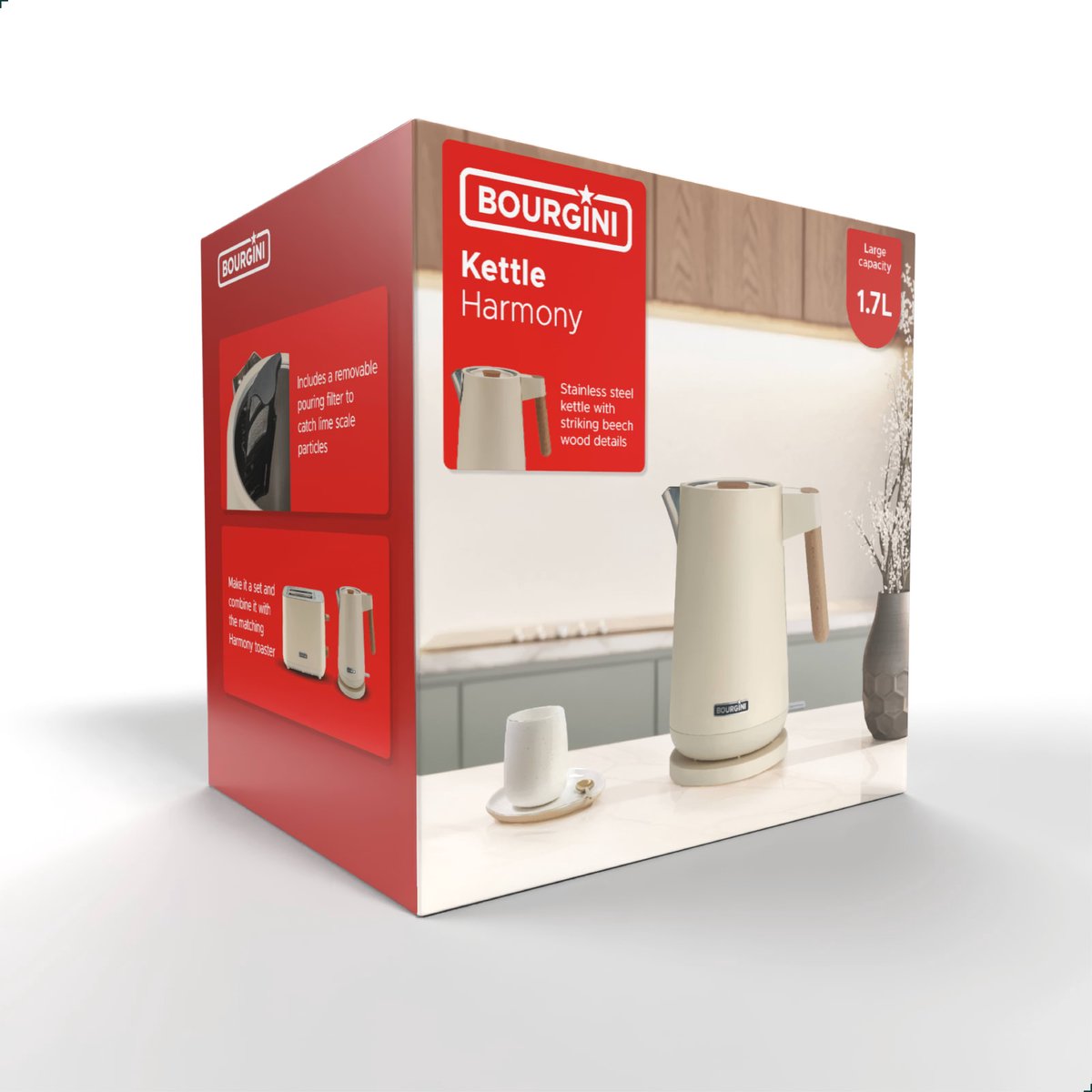 Roestvrij staal staat bekend om zijn stevige, onderhoudsvriendelijke karakter. De beukenhouten details geven een warme, huiselijke uitstraling. Deze combinatie tilt de waterkoker visueel boven standaardmodellen uit. Het maakt de Bourgini Harmony waterkoker tot een object dat gezien mag worden, niet alleen een gebruiksvoorwerp.