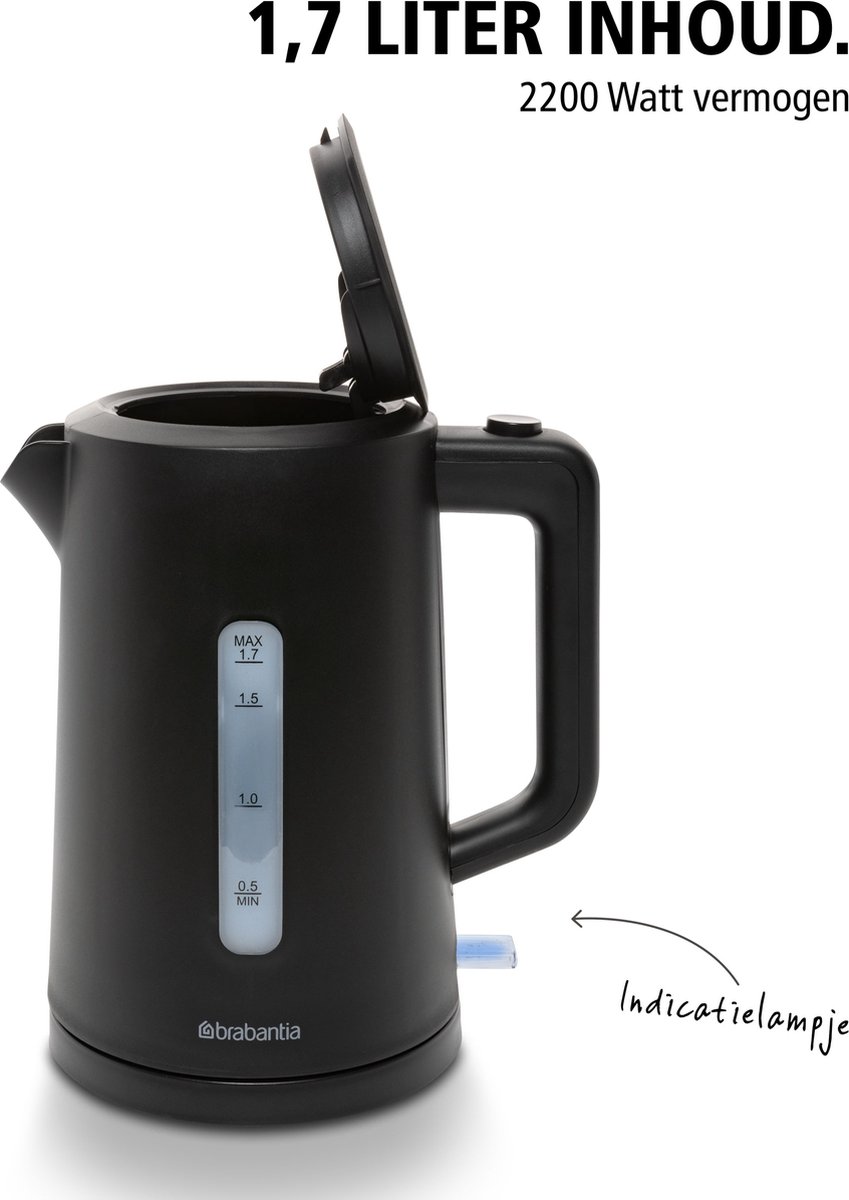- Wat het is: een 1,7‑liter Brabantia Waterkoker met focus op gemak, veiligheid en een strak uiterlijk.