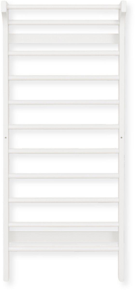 De klimwand is vervaardigd uit hoogwaardig, natuurlijk hout met een witte afwerking. Het oppervlak is glad afgewerkt en de hoeken zijn afgerond, wat het toestel kindvriendelijk maakt en scherpe randen voorkomt. Met afmetingen van 190 x 68 x 8 cm en een gewicht van 9 kg neemt de wand een duidelijke maar niet overdreven grote ruimte aan de muur in (source: listing, checked 2025).