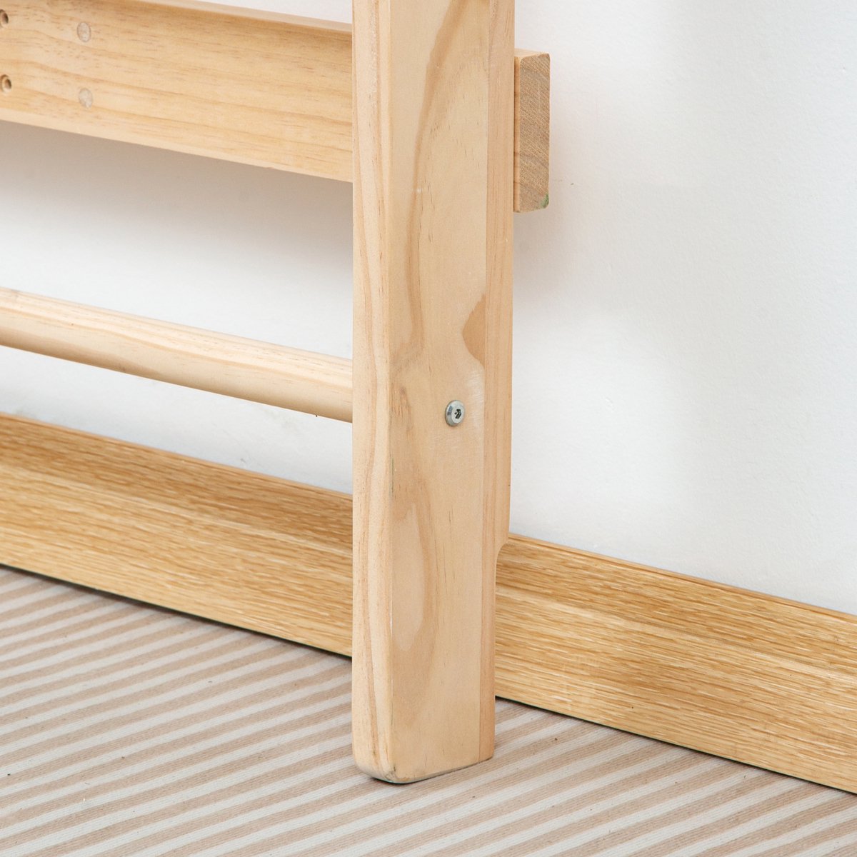 Kort oordeel: een degelijk, ruimtebesparend houten wandklimrek dat vooral geschikt is voor jonge kinderen die binnen actief willen spelen.