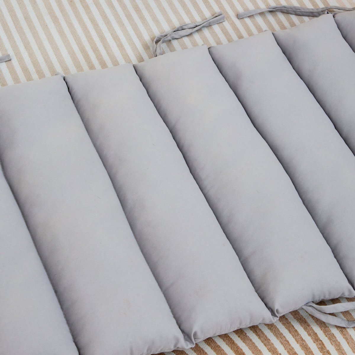 Veiligheid in gebruik: gebruik het kussen uitsluitend als comfortlaag en niet als vervanging van structurele ondersteuning of als onafhankelijk speeltoestel. Laat jonge kinderen niet zonder toezicht langere tijd op verhoogde delen spelen.