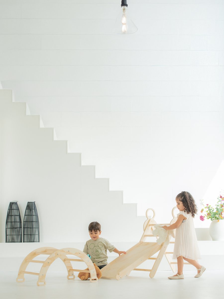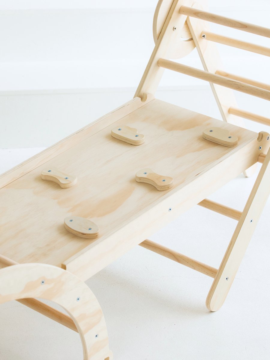 De Buxibo Mini Klimrek is een compact, multifunctioneel houten speeltoestel dat klimboog en klimhelling met glijbaan combineert. Het is ontworpen voor binnengebruik en richt zich op jonge kinderen die spelenderwijs hun motorische vaardigheden willen ontwikkelen. Dit mini klimrek past in kinderkamers en speelkamers en heeft een rustig, natuurlijk uiterlijk dat goed aansluit op moderne interieurs.