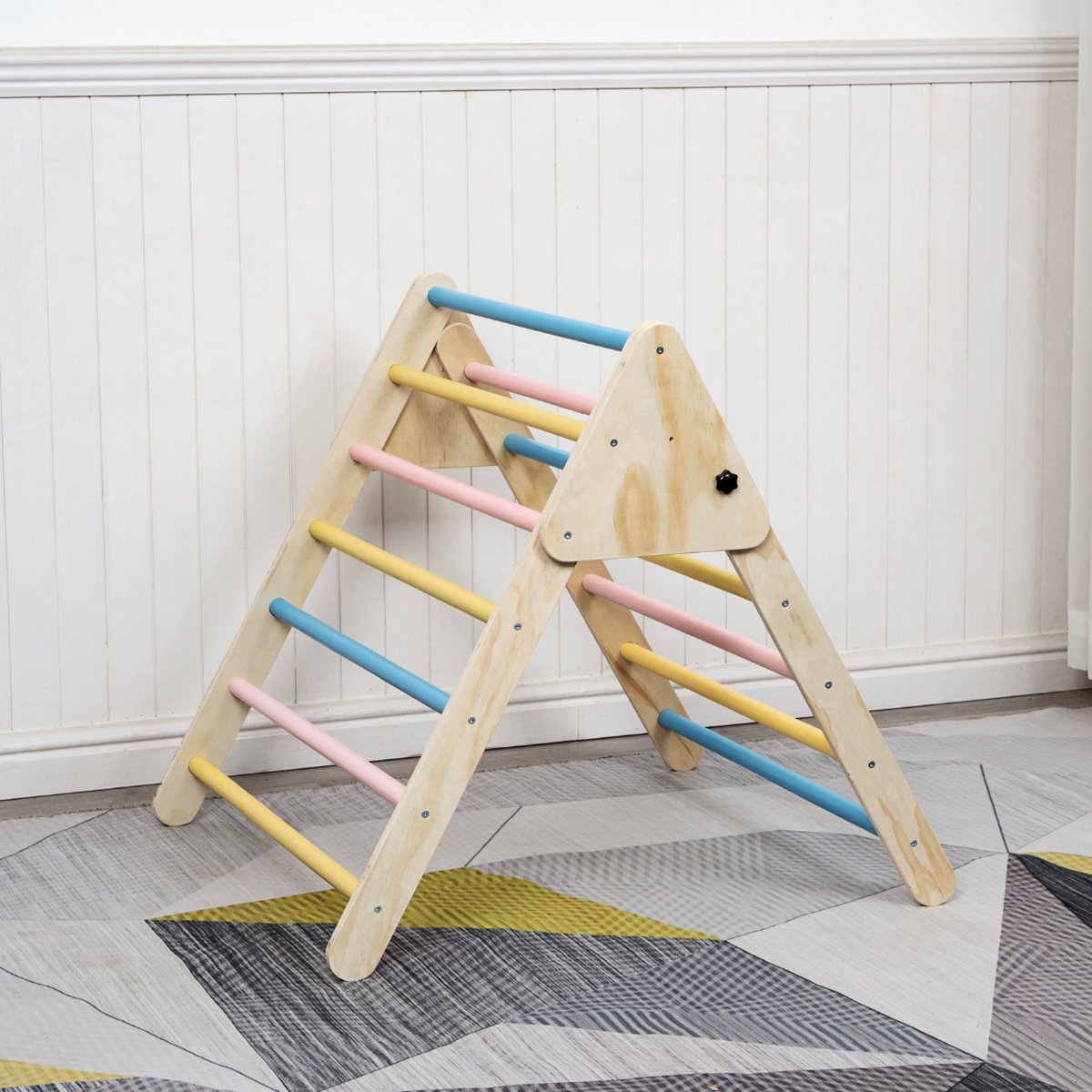 Ergonomie: de vormen (driehoek en boog) zijn ontworpen om diverse klimgrepen en doorgangen te bieden. Omdat de onderdelen apart gebruikt kunnen worden, kun je de hoogte en helling aanpassen aan de leeftijd en vaardigheid van het kind. Veiligheidskeurmerken of maximale belastbaarheid zijn niet gespecificeerd, dus houd rekening met toezicht en niet laten gebruiken door oudere kinderen of volwassenen tenzij de fabrikant dat expliciet vermeldt.
