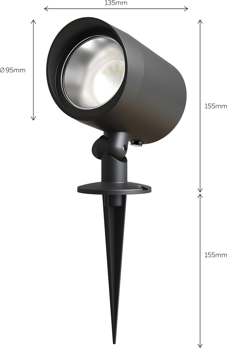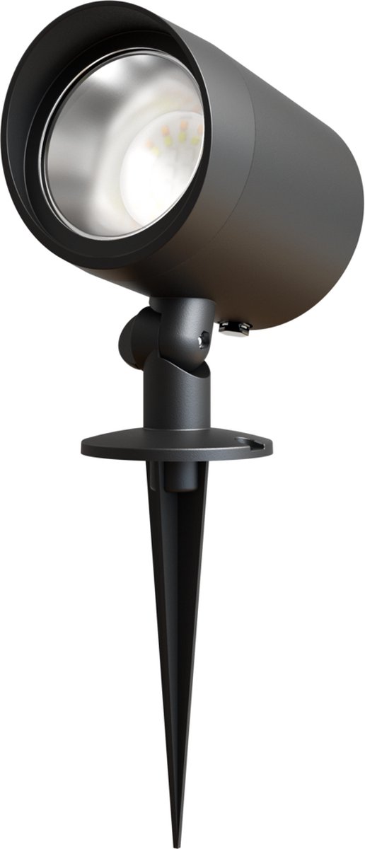 Een prikspot moet je snel in de grond kunnen zetten, zonder boorwerk. De grondpen onderaan maakt dat mogelijk. Ook handig: je kunt de spot in de loop der seizoenen of bij herinrichting van je beplanting verplaatsen. Steek ‘m op een nieuwe plek en draai de kop naar het nieuwe doel.
