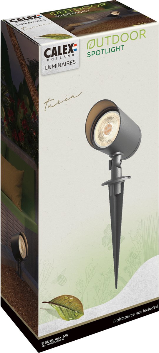 Qua ergonomie is de bediening volledig draadloos via de Calex-toepassing. De fysieke handeling beperkt zich tot plaatsen, richten en inpluggen. Daarna regel je de rest vanaf bank of terras. Voor wie vaak van scène of kleur wisselt, is dat een groot gemak.