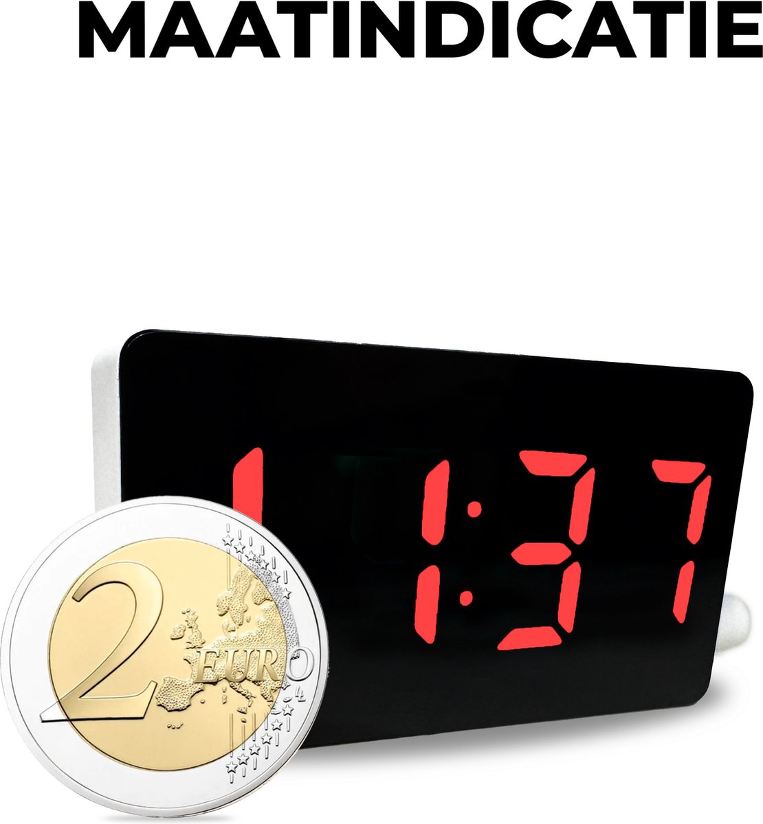 De datum wordt alleen als maand/dag weergegeven. Er is geen automatische zomertijd (DST). Het snoertje is wat stijf en relatief kort voor zo’n licht apparaatje (30 gram), waardoor de wekker niet makkelijk goed blijft staan — ik heb hem daarom vastgeplakt. Een USB-adapter moet je apart aanschaffen. De term “laadkabel” wekt de indruk dat de wekker oplaadbaar is, maar dat is niet zo (wel blijven de instellingen bewaard dankzij een geplaatste batterij).