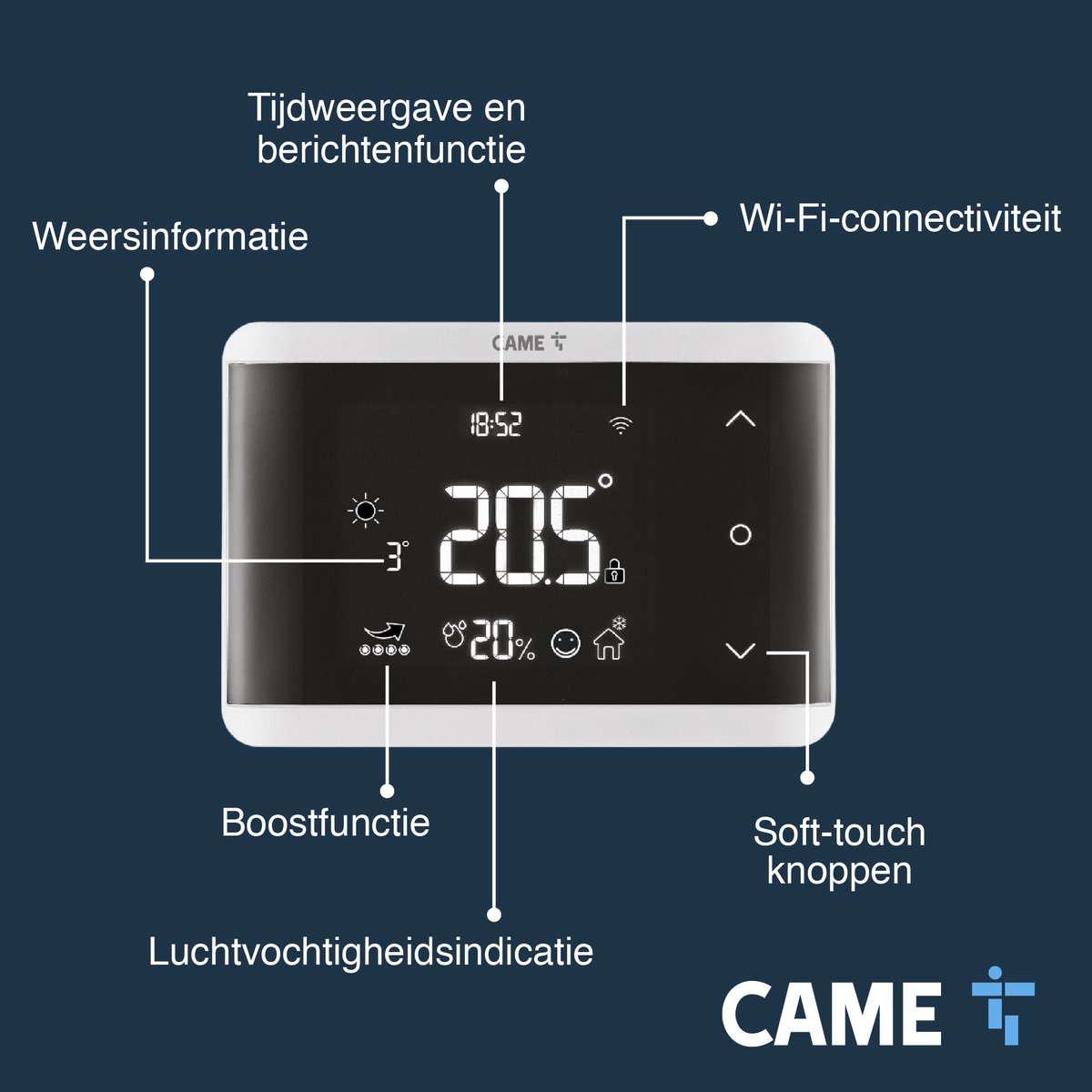 - Regel klimaat nauwkeurig op afstand met wifi en CAME Thermo‑app.