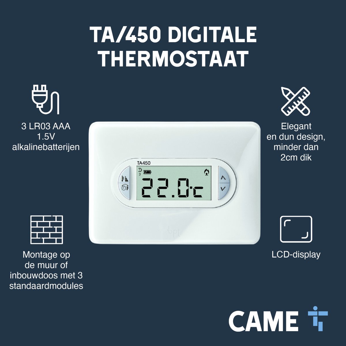 Specificaties: CAME – Wandthermostaat TA/450 review: energie besparen, domotica