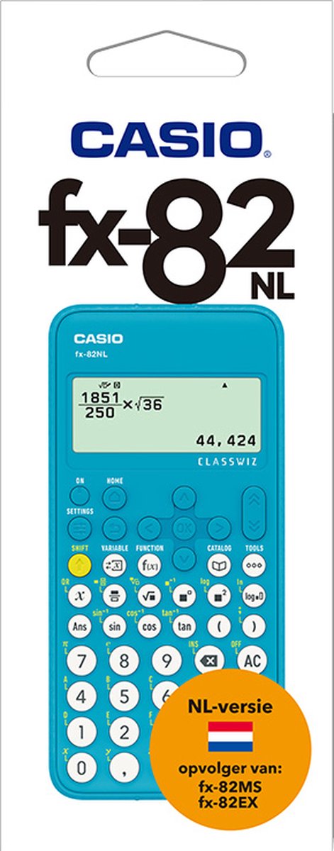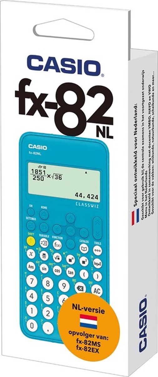 De Casio fx-82NL is een rekenmachine die specifiek is afgestemd op het Nederlandse onderwijs. Het is een doorontwikkeling van de bekende fx-82-serie (fx-82MS en fx-82EX) met instellingen en taal aangepast aan wat scholieren in Nederland nodig hebben.