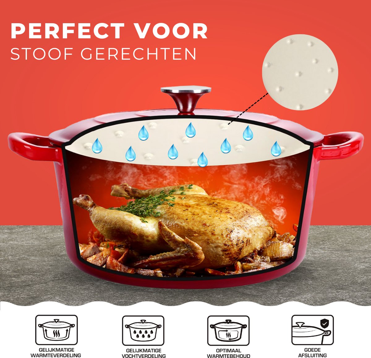 • Ovenbereiding: ideale overgang van fornuis naar oven voor gerechten als cassoulet of braadstukken met saus.