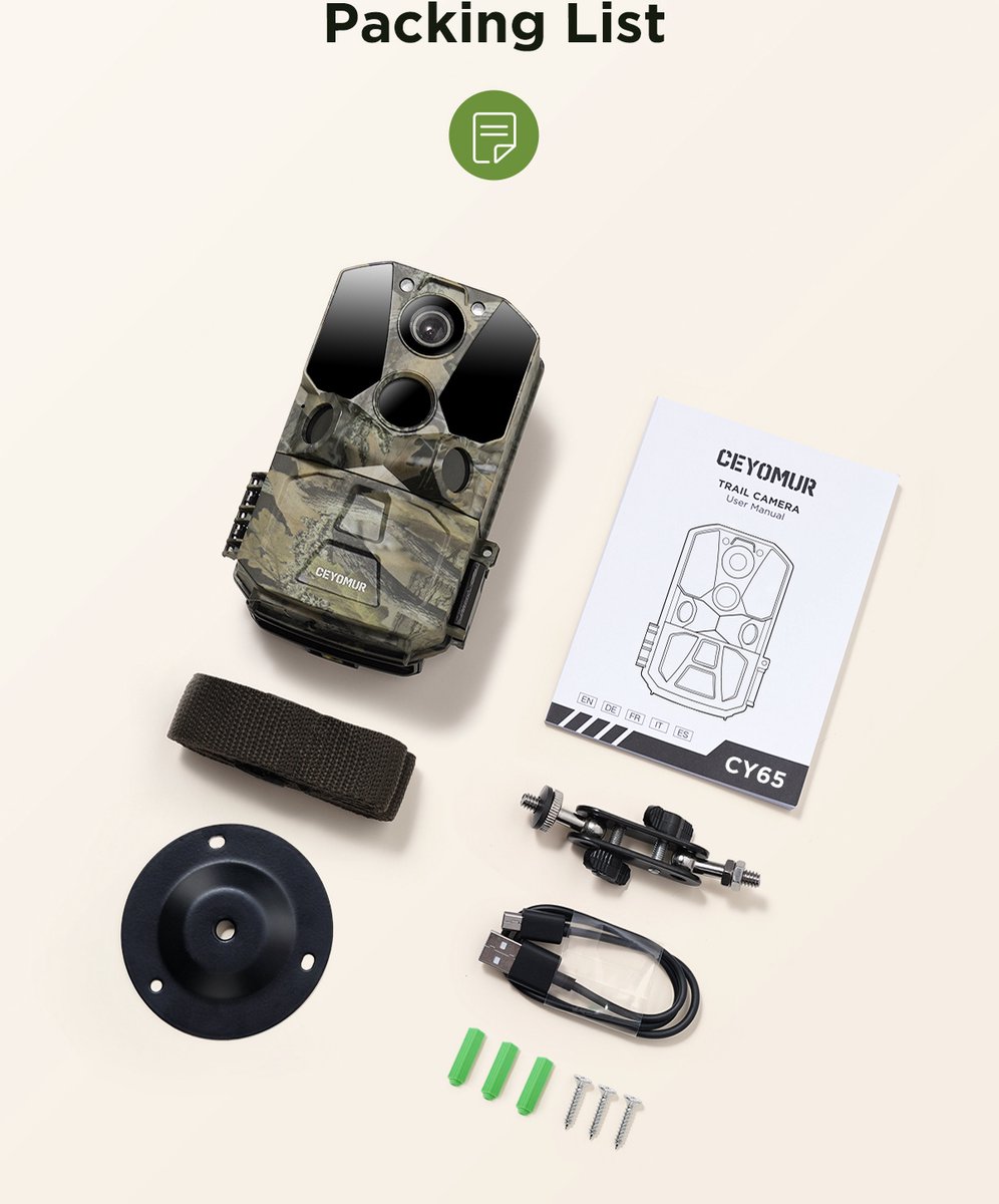 Overview:De CEYOMUR CY65 wildcamera is een draadloze observatiecamera voor Nederlandse natuurliefhebbers. Koop hem om beelden direct en zonder abonnement naar je telefoon over te zetten; hij maakt 30 megapixel foto’s en 1296p-video’s.