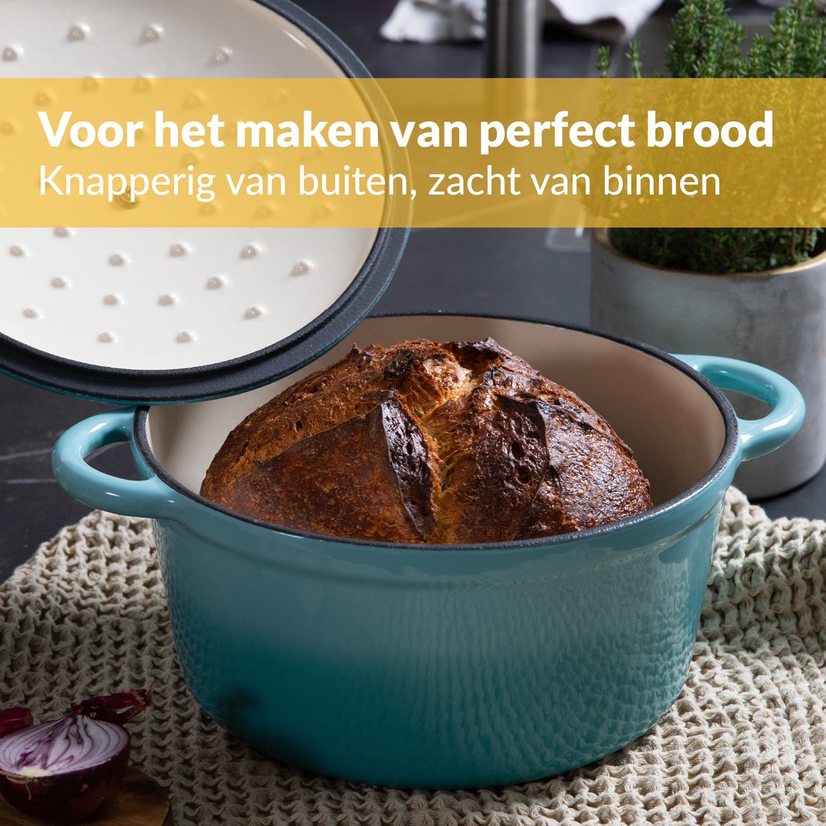 Veelzijdig inzetbaar: braden, stoven, koken en brood bakken | Afwerking en kleur/stijl niet gedetailleerd beschreven |