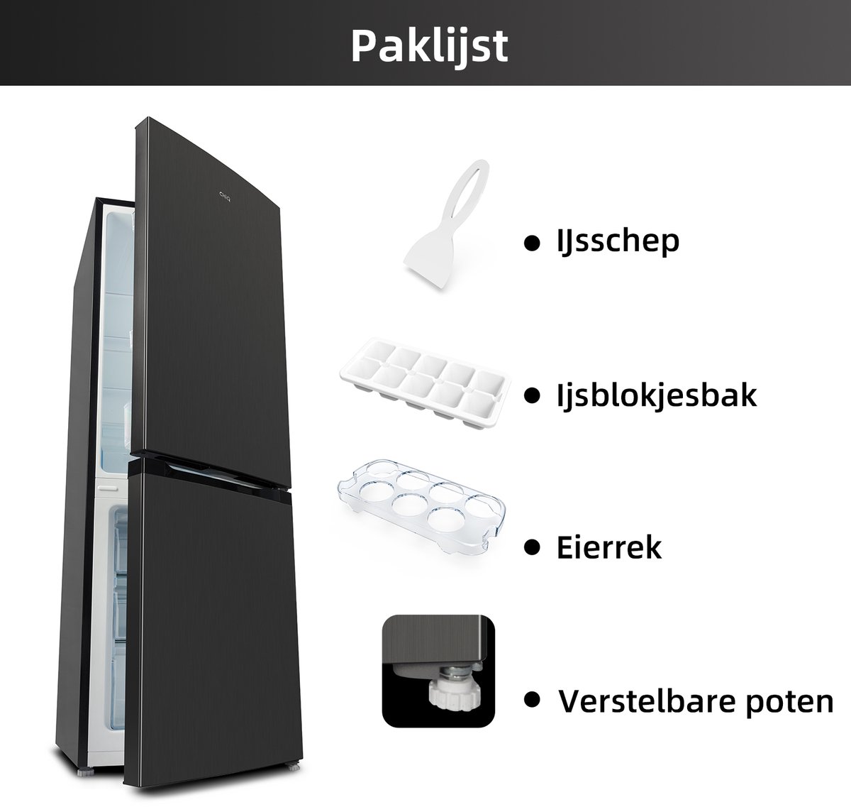 De CHiQ CBM260LC heeft een vrijstaand ontwerp. Dat betekent dat je hem zonder inbouwen kunt plaatsen en, belangrijk, je geen rekening hoeft te houden met nisafmetingen of speciale meubelpanelen. De deur is omkeerbaar: je kunt de scharnieren links of rechts monteren zodat de deur altijd handig opengaat in jouw keukenopstelling (bron: listing, gecheckt 2025). Dat is vooral nuttig bij hoeken, naast een muur of als je later verhuist.