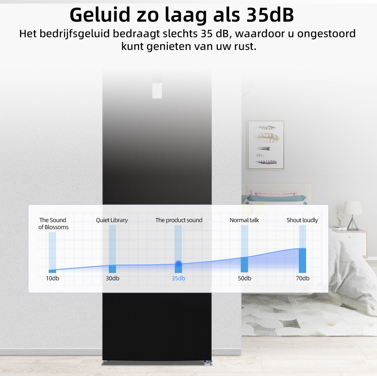 - Geluidsniveau: 35 dB (bron: productvermelding, gecontroleerd 2025)