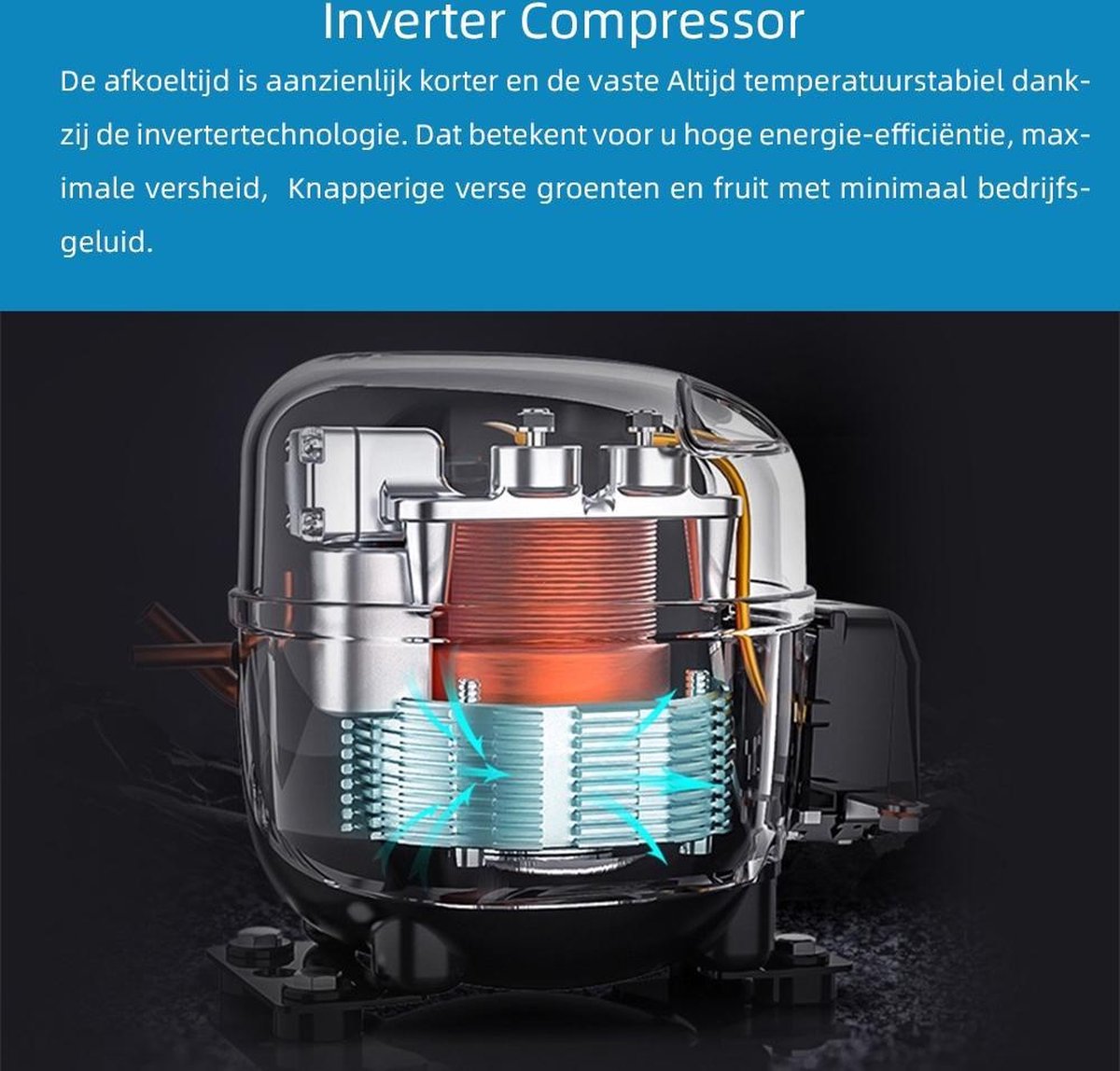 Meerdere luchtkanalen brengen gekoelde lucht tot in elk hoekje, zodat de temperatuur in het hele interieur consistent blijft. Dat helpt voedsel langer vers te houden, voorkomt warme zones en zorgt ervoor dat nieuwe boodschappen sneller op temperatuur komen. In de praktijk merk je dat yoghurt achterin net zo koel blijft als de salade in het deurvak (bron: productvermelding, gecontroleerd 2025).