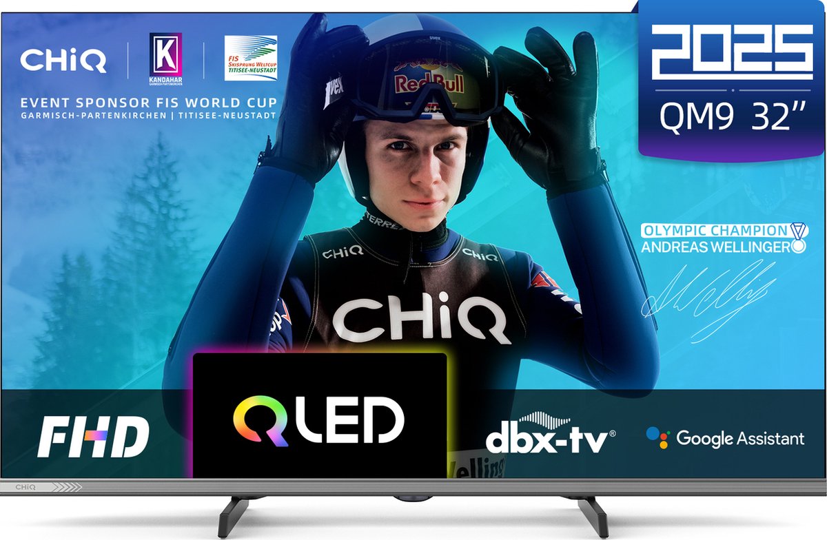 Overzicht:De 2025 Serie QM9 32” QLED FHD slimme tv van CHiQ is ideaal voor Nederlandse kijkers met beperkte ruimte die toch kleuraccuratesse zoeken. Het 32 inch Full HD-beeldscherm (1920×1080) met HDR10 levert levensechte kleuren en beter contrast.