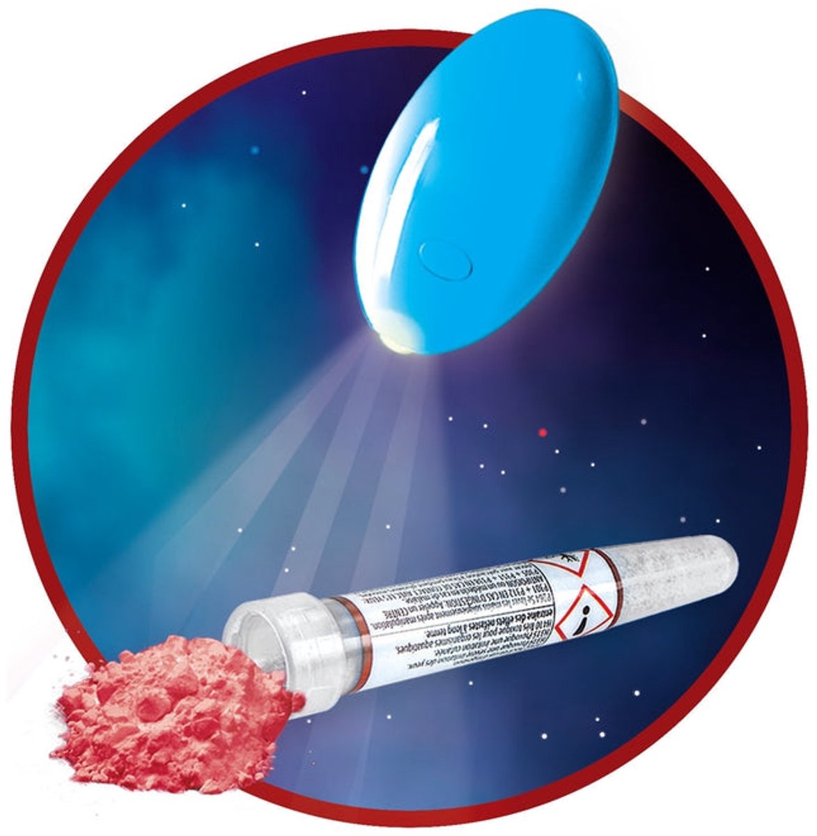 De kern van de uitbarsting is een eenvoudige zuur-basereactie, waarbij bicarbonaat een cruciale rol speelt. Wanneer die reactie op gang komt en gasbelletjes ontstaan, zie je het schuimende “lava”-effect in real time. Dat is hét moment om kinderen mee te nemen in vragen als: wat is er nodig om deze reactie te starten? Welke rol speelt het licht? Wat gebeurt er als je verhoudingen aanpast (steeds binnen de veilige marges uit de handleiding)? Zo wordt een wetenschappelijk experiment concreet en begrijpelijk.