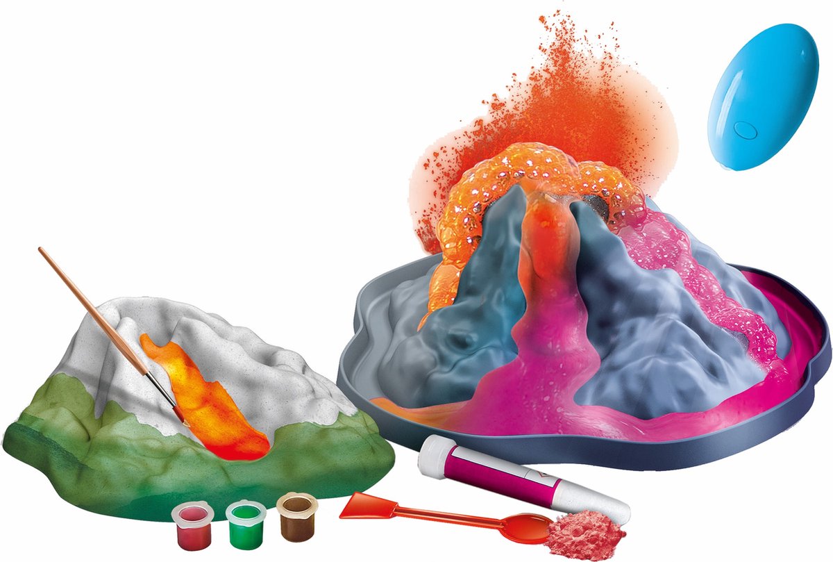 - Bouw en personaliseer je vulkaan, met gipsmal en inbegrepen verf.
