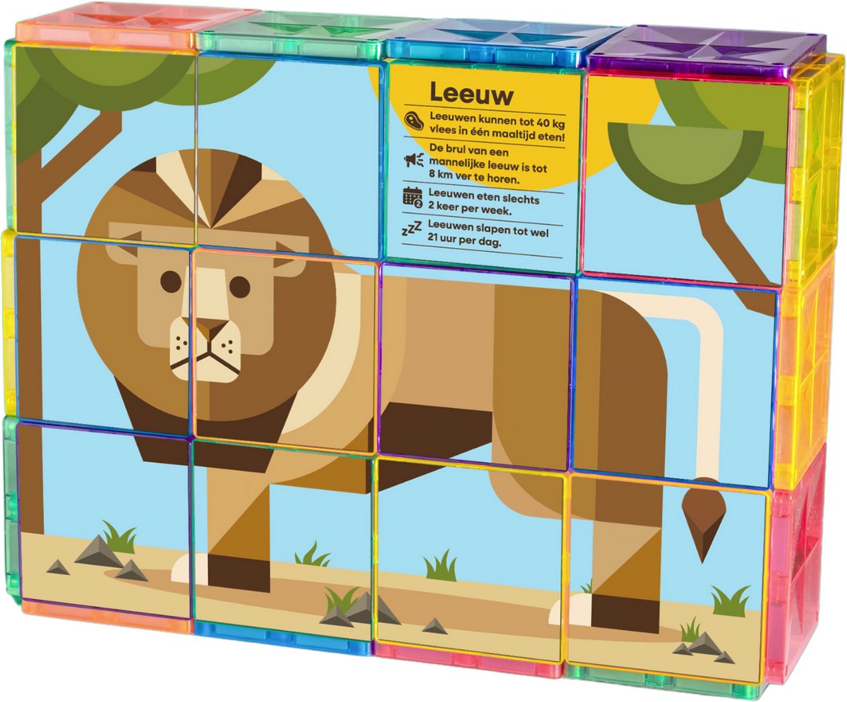 - Bouw 2D of 3D dieren, dankzij stevig klikkende magneetlaag.