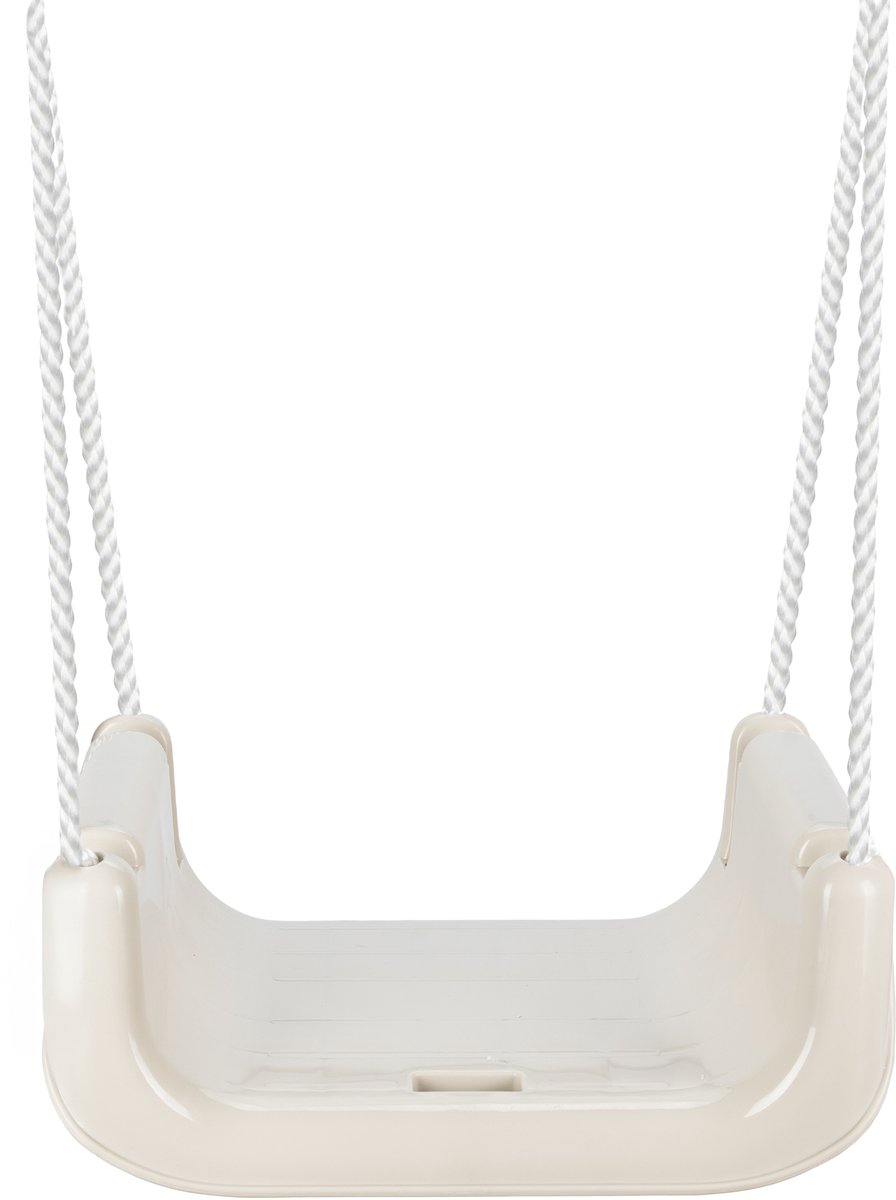 Ergonomie: de zitting heeft een vorm die de rug en benen van jonge kinderen ondersteunt. Voor de kleinste gebruikers is er volledige lichaamsondersteuning met banden; voor oudere kinderen kan de voorzijde worden verwijderd zodat ze meer bewegingsvrijheid ervaren. Dit maakt de schommel veelzijdig en gebruiksvriendelijk.