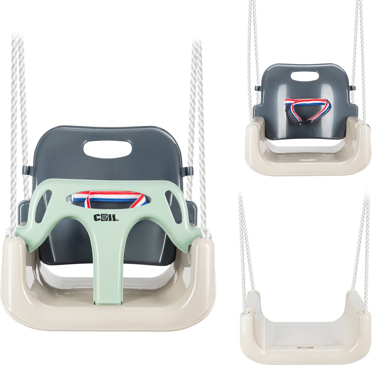COIL kinder tuinemmer schommel sterk 3in1 + riemen, grijs en olijfgroen review veilig buitenspelen