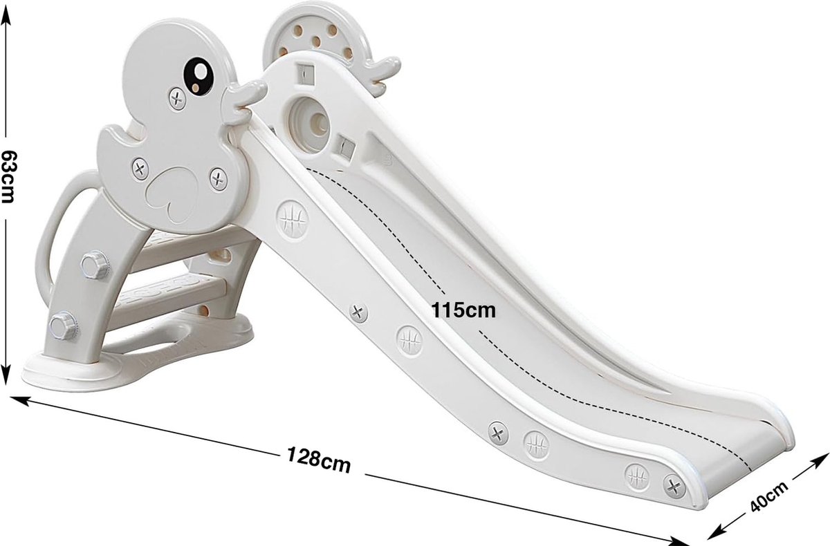 De fabrikant noemt dat de glijbaan geschikt is voor kinderen van 1 tot 5 jaar, met een lage platformhoogte voor veilig gebruik (source: listing, checked 2025). Dit maakt het een goede keuze als eerste glijbaan tijdens de motorische ontwikkeling in de vroege jaren.