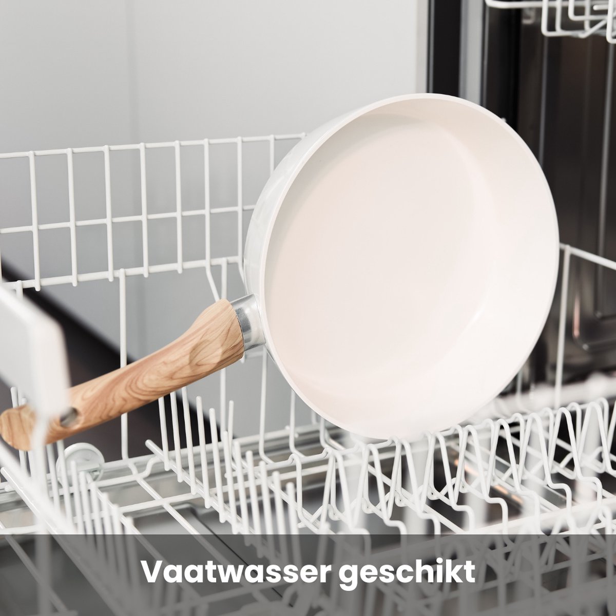 Praktische tip: hoewel de fabrikant vaatwasserbestendigheid vermeldt, verlengt handmatig afwassen (milde spons, geen schurende middelen) doorgaans de levensduur van antiaanbaklagen.
