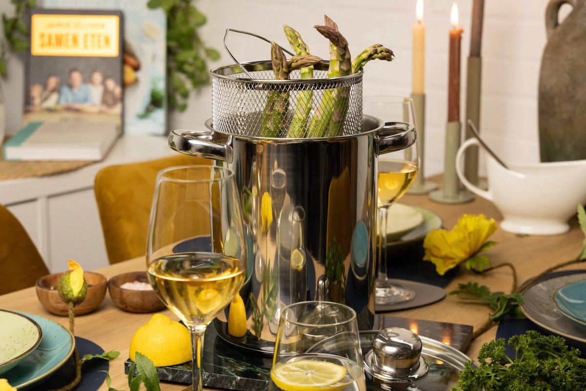 - Bereid moeiteloos asperges en pasta — inclusief aspergemandje voor eenvoudig afgieten.