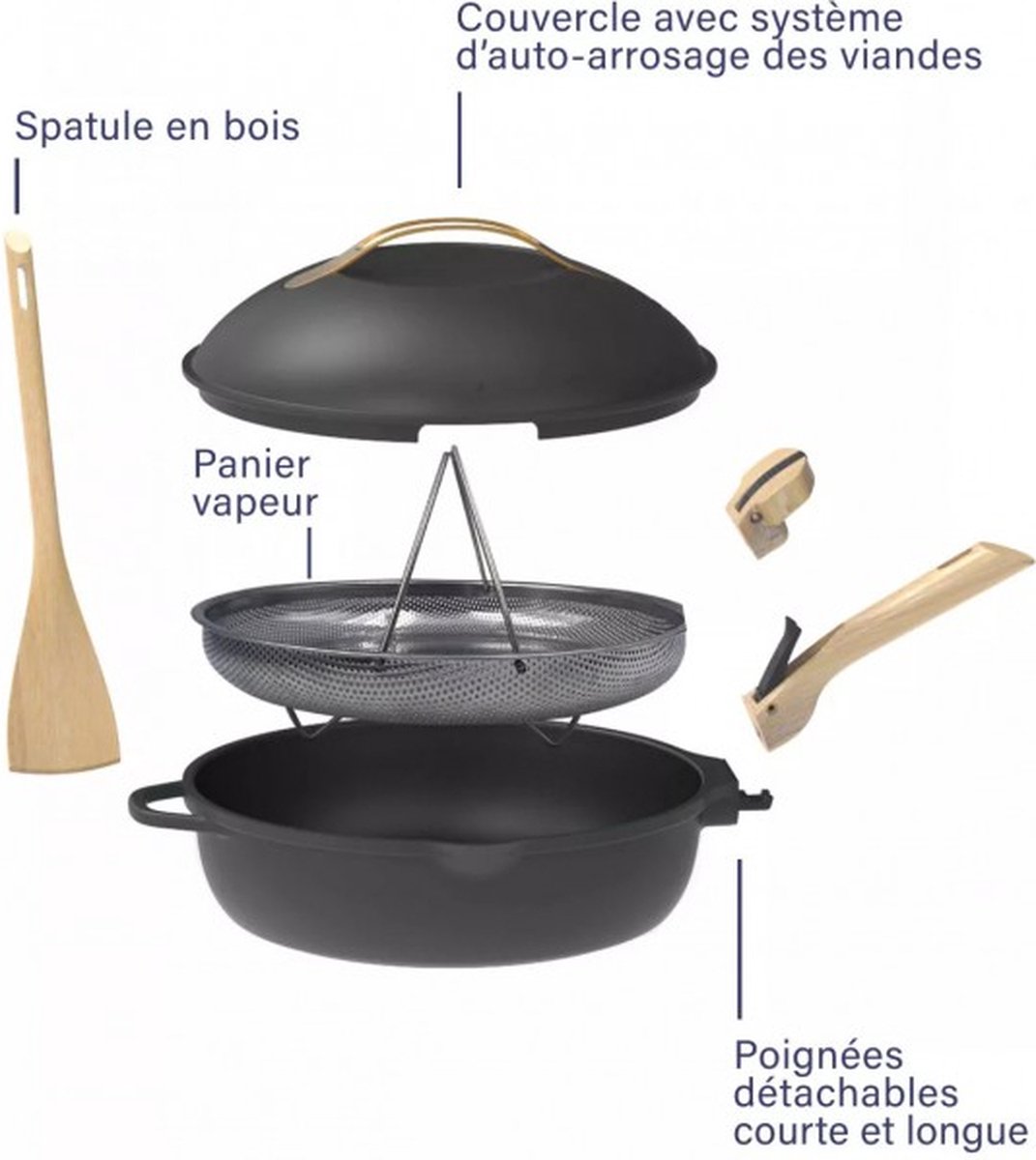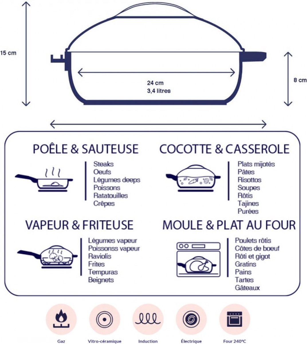 Deze multifunctionele kookpot is meer dan een gewone pan: het is een alleskunner die bakken, braden, stomen, frituren en zelfs het bereiden van ovenschotels mogelijk maakt met behulp van de meegeleverde accessoires. Voor wie weinig ruimte heeft in de keuken of graag één toestel wil dat veel kooktaken vervangt, is dit een aantrekkelijke optie.