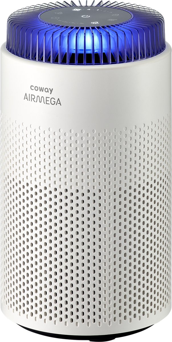 De Coway Airmega 50 is een compacte luchtreiniger, ideaal voor Nederlandse slaapkamers en kleine ruimtes. Met een CADR van 120,1 m³/u reinigt hij snel de lucht in ruimtes tot circa 31 m².