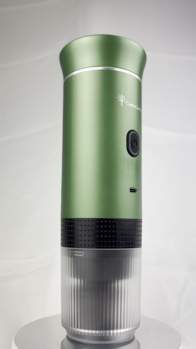 De Cuisina Lumina® is een compacte, luxe draagbare koffiemachine die zowel hot brew als cold brew ondersteunt. Het apparaat is ontwikkeld voor wie onderweg of thuis geen concessies wil doen aan smaak of crema en heeft een robuuste bouw met materialen zoals ABS, 304 roestvrij staal en hittebestendig PC-plastic.