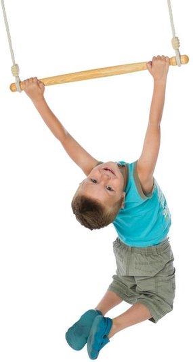 • Diameter trapeze: 35 mm — een gangbare dikte die voldoende grip biedt voor zowel kinderen als volwassenen zonder te dik aan te voelen.