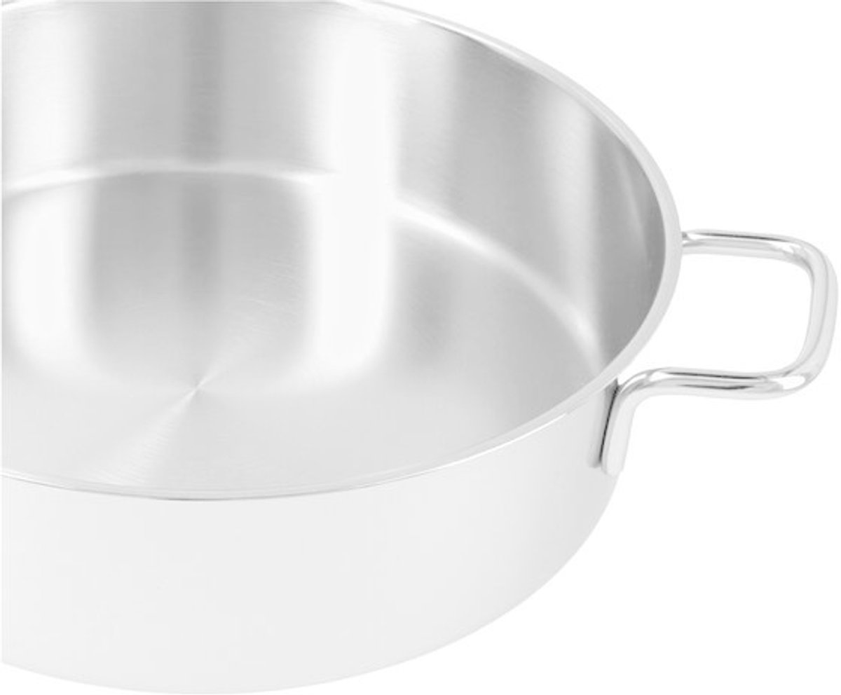 - Roeren en omscheppen gaan soepel dankzij de lage rand. Ideaal voor risotto, groente of roerbakgerechten.