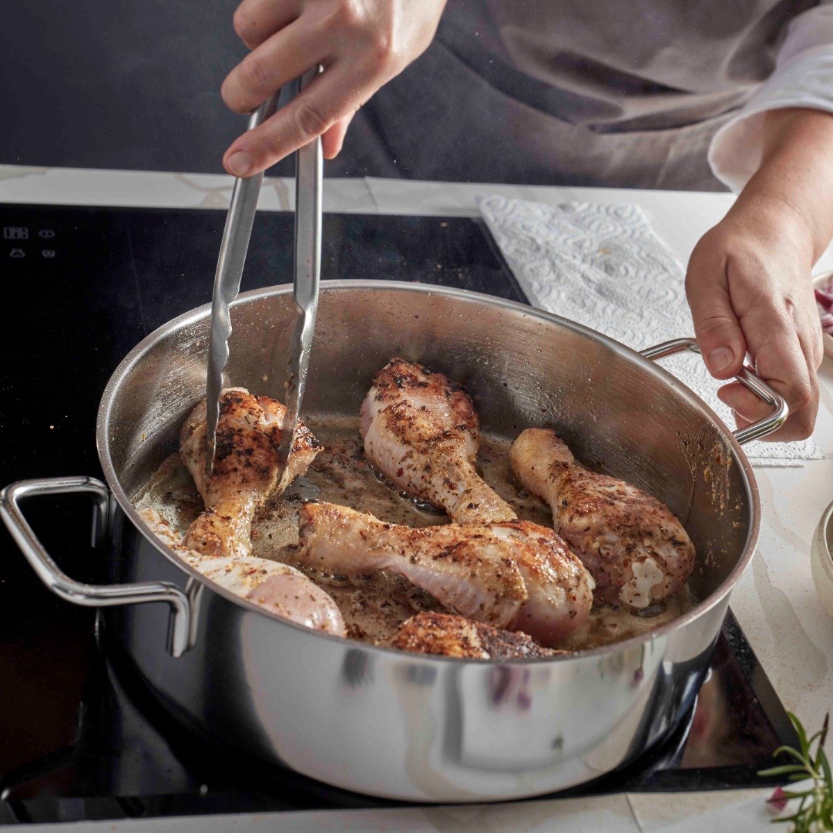 | TriplInduc is volgens de fabrikant tot 30% sneller/efficiënter op inductie, met meer controle | Roestvrij staal vergt enige techniek om aanbranden te voorkomen |