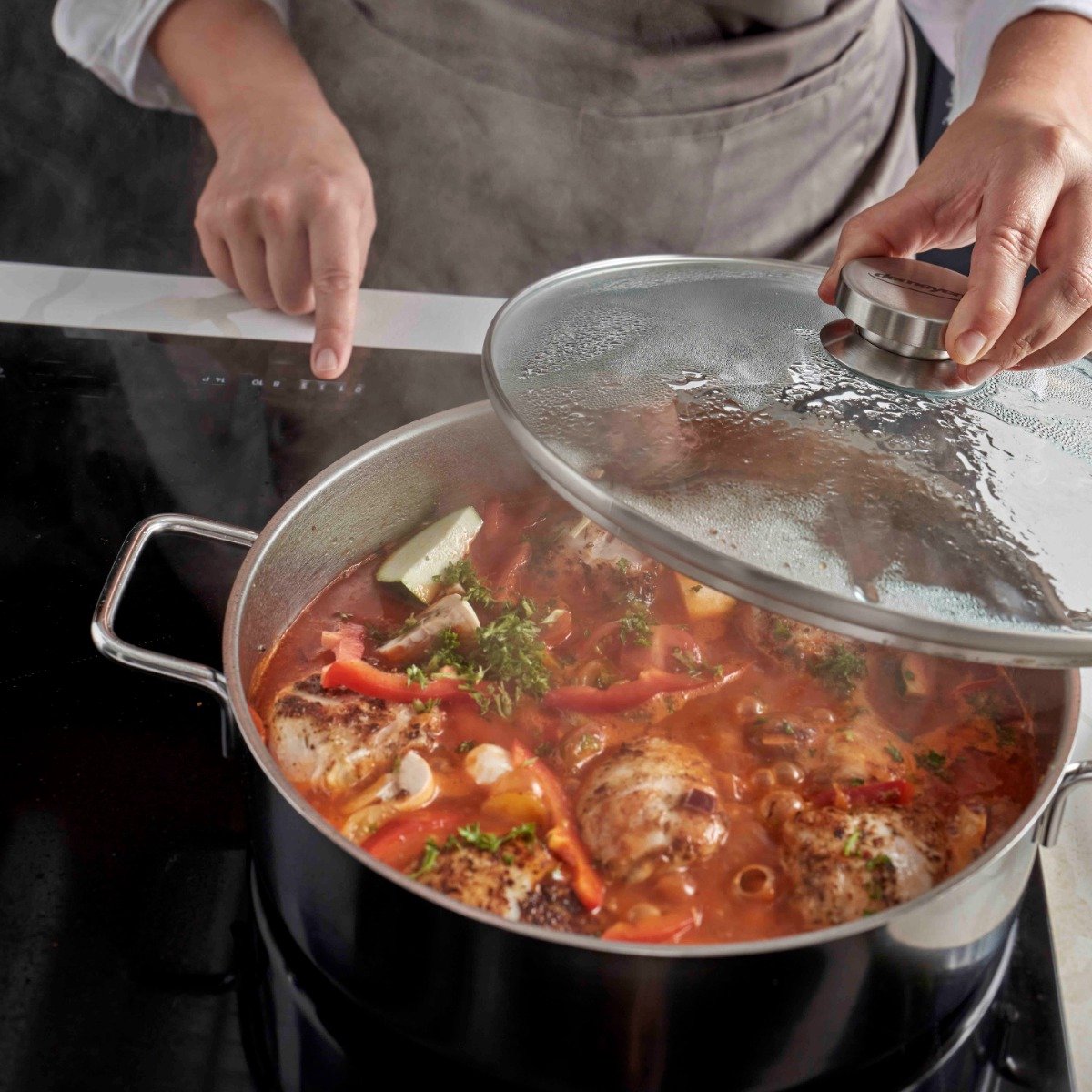 Het meegeleverde glazen deksel sluit nauw aan. Hierdoor blijven stoom, vocht, smaak en vitamines beter in de pan, waardoor je gerechten malser en sappiger blijven. Omdat je visueel kunt meekijken zonder het deksel op te tillen, verlies je minder warmte en kook je energiezuiniger. Dit is ideaal voor: