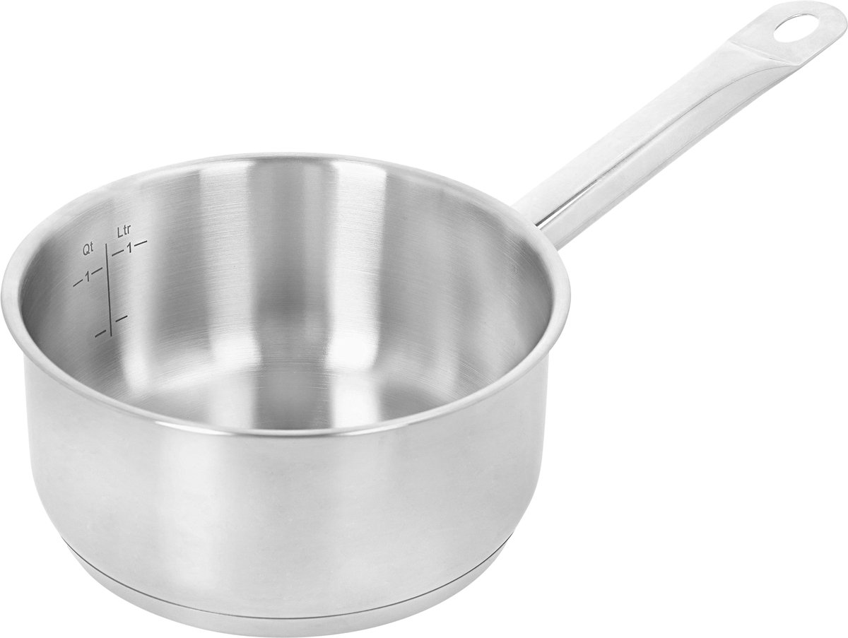 • Steelpan 1,5 L zonder deksel: perfect voor sauzen, opwarmen en het maken van kleine porties.